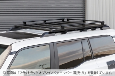 ■走行中の風切り音を軽減する「JAOS フラットラック オプション ウィンドディフレクター type-A」の同時装着を推奨しています。 ■年式 23.05- ■適応 ALL ■商品内容 本体(フロアバー×6)、フットセット×4、エンブレムステッカー×1 ■仕様 ・本体 ・素材:アルミ ・カラー:黒アルマイト ・サイズ:W1150mm×L1400mm(厚さ:コーナーキャップ 39mm、アルミフレーム 32mm) ・エンブレムステッカー:【素材】PVC材(ハイボスカル)、【サイズ】85mm×18mm ■取付方法 ボルトオン ■取付時間 1.5〜2.0時間 ■装着時寸法 全高:ルーフレールから+35~40mm